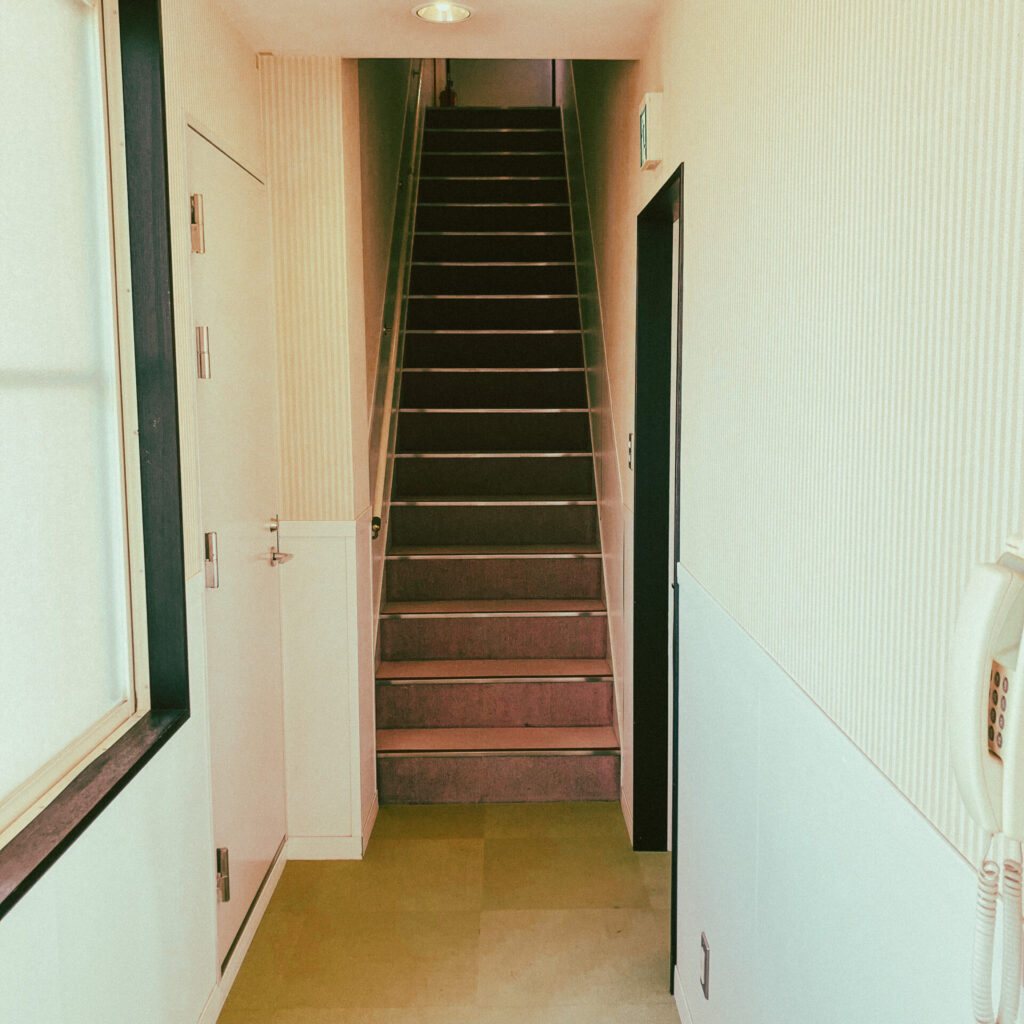 階段が。謎の裏口なのか??