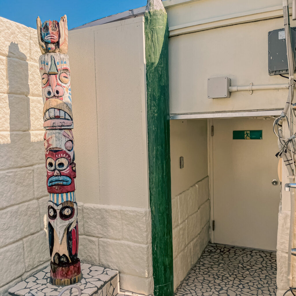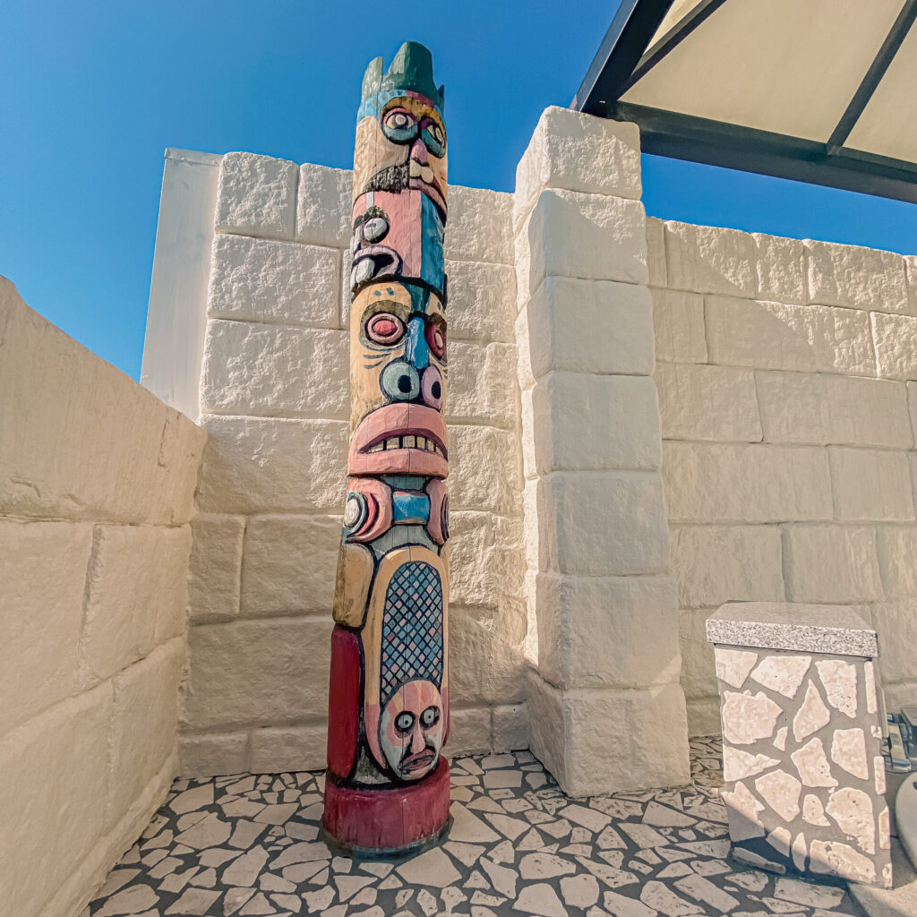 そこには謎のトーテムポールと、