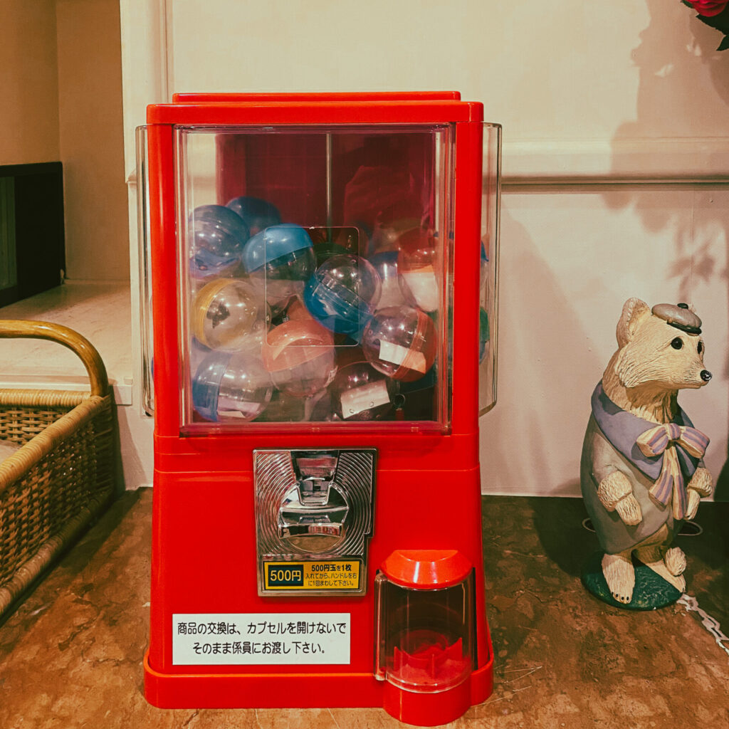 部屋は広い。ガチャガチャの横には、上品なおうちにお邪魔した時のような陶器の置物が鎮座。