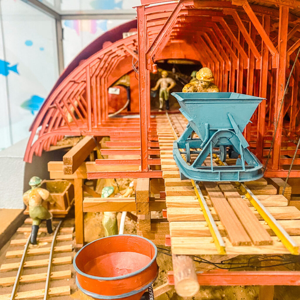 フグの描かれた自動ドアを抜けると、関門トンネルと関門橋の資料館が現れる。