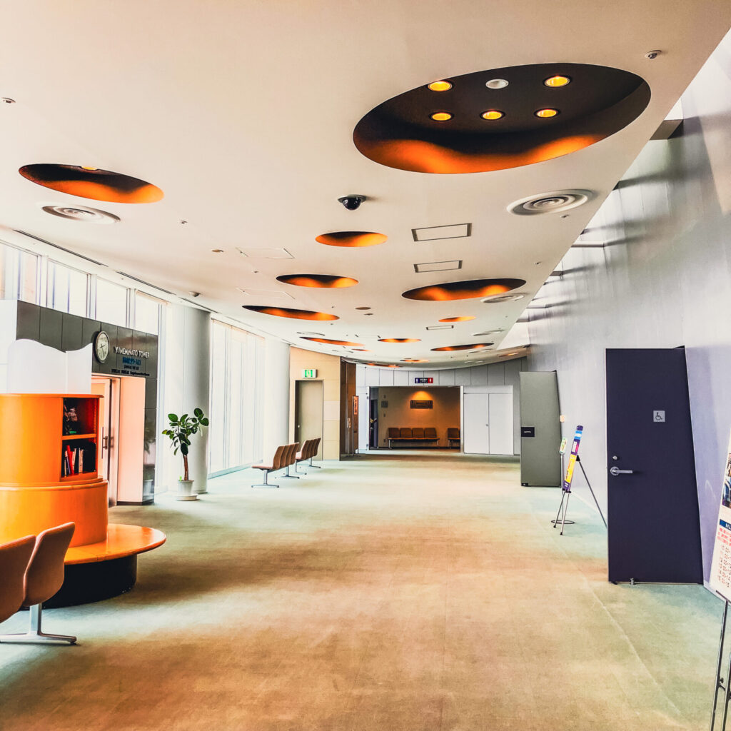 1階から4階までは併設する半ドーム型の建物と一体になっており、オフィス・会議室・ミュージアムが入る。