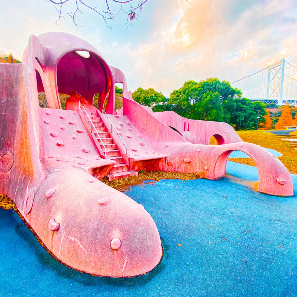 関門海峡タコをモチーフにして作られたこの遊具は、2010年に設置された。案外新しい。