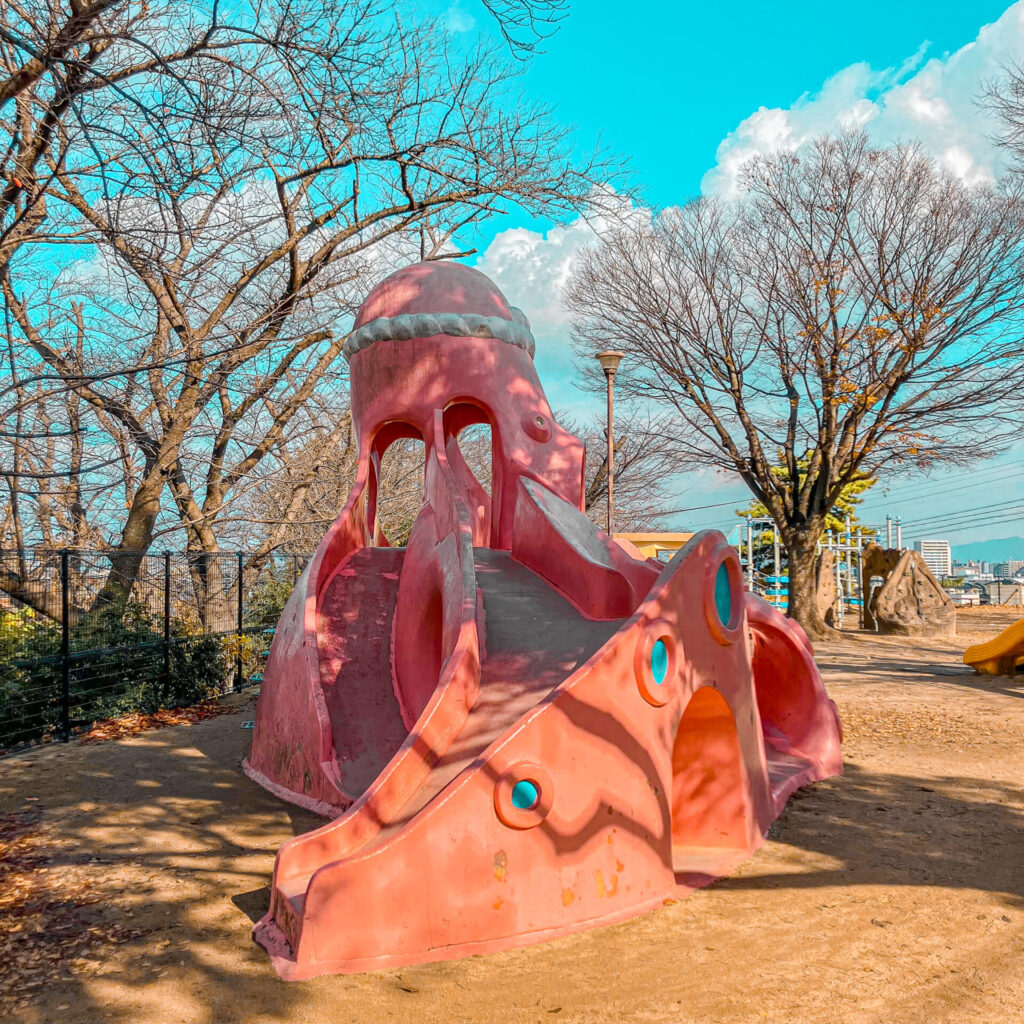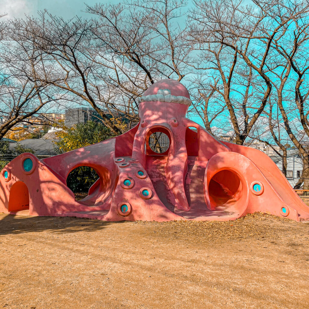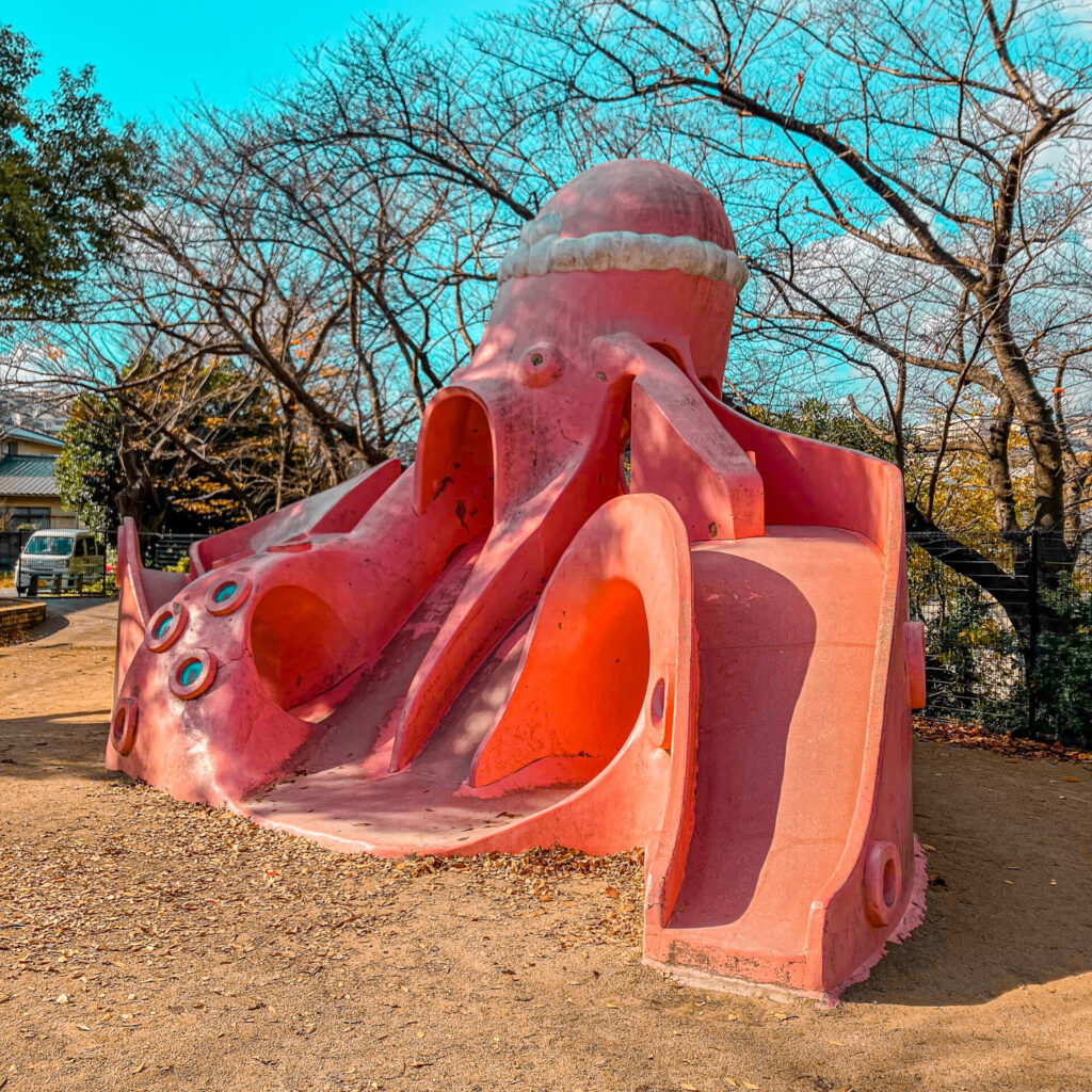 たまーに公園で見かける、コンクリート製で遠くからでもその圧倒的な存在感を醸し出している巨大な「たこ型遊具」。正式名称はないようで「タコの山」の愛称で親しまれている。「たこ型遊具」が置いてある公園をハイカラダイブは勝手に「たこパー」と名付けました。「たこパーク」略して「たこパー」。「ひらかたパーク」略して「ひらパー」と同じように。そんな「たこパー」をご紹介。