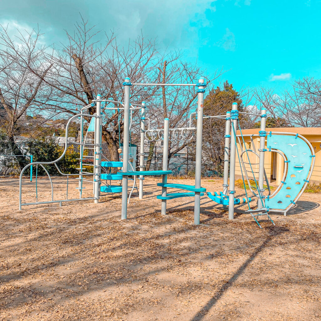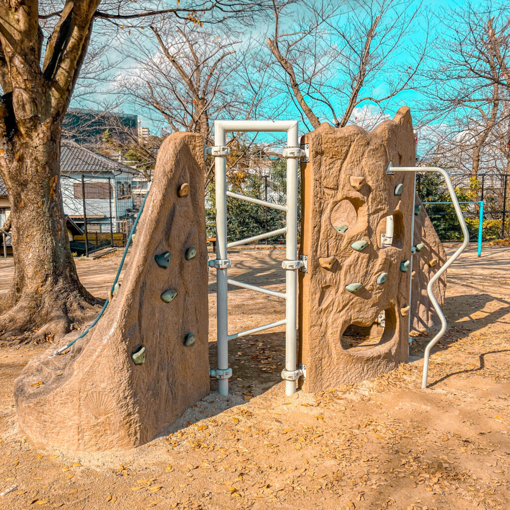 小規模な公園ながら、ここにはブランコや鉄棒、ボルダリング遊具や、