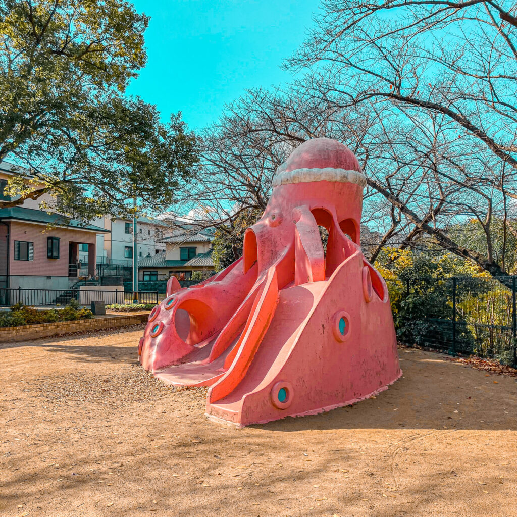 初めて見ました、ハチマキがついたタコ遊具。「坊ちゃん嬢ちゃん、怪我すんなよー」と江戸っ子な感じで話しているような気がする。