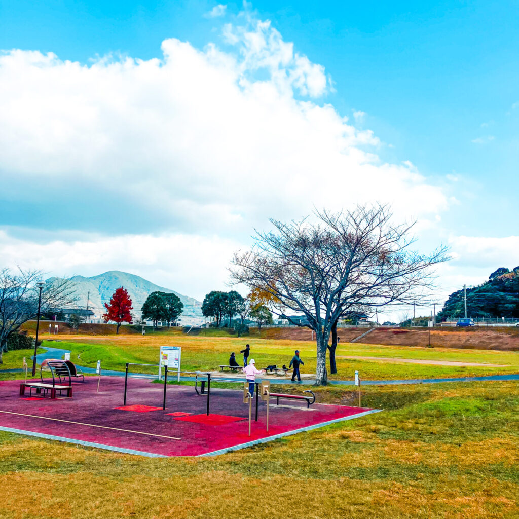 広い敷地の公園にはジョギング、ウォーキングのレーンや健康遊具があり、年配の方が多い印象。