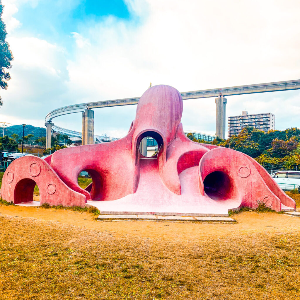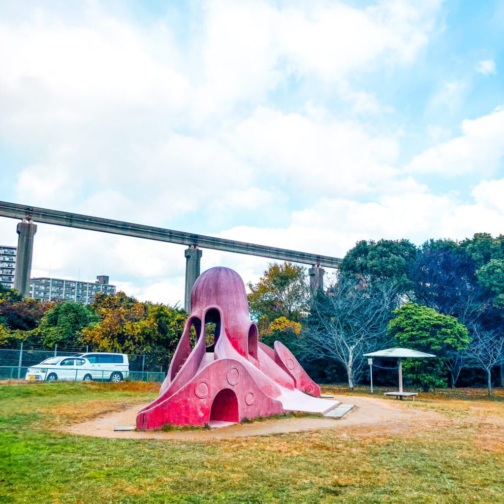 志井公園のタコさんは後ろにモノレールの線路とよくお似合いです。