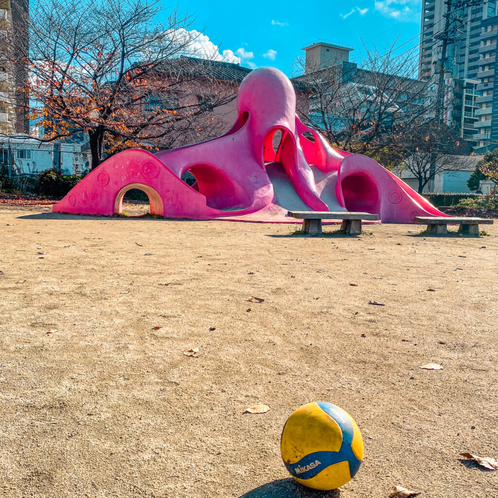 なんともオーソドックスな形のタコ遊具じゃあないか。