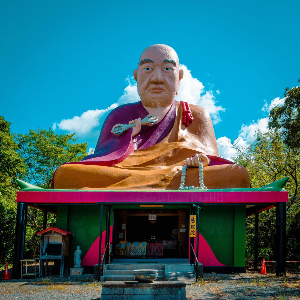 ここは熊本県荒尾市にある、慈照院。屋根には巨大な弘法大師像。