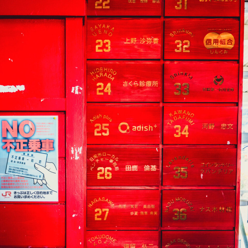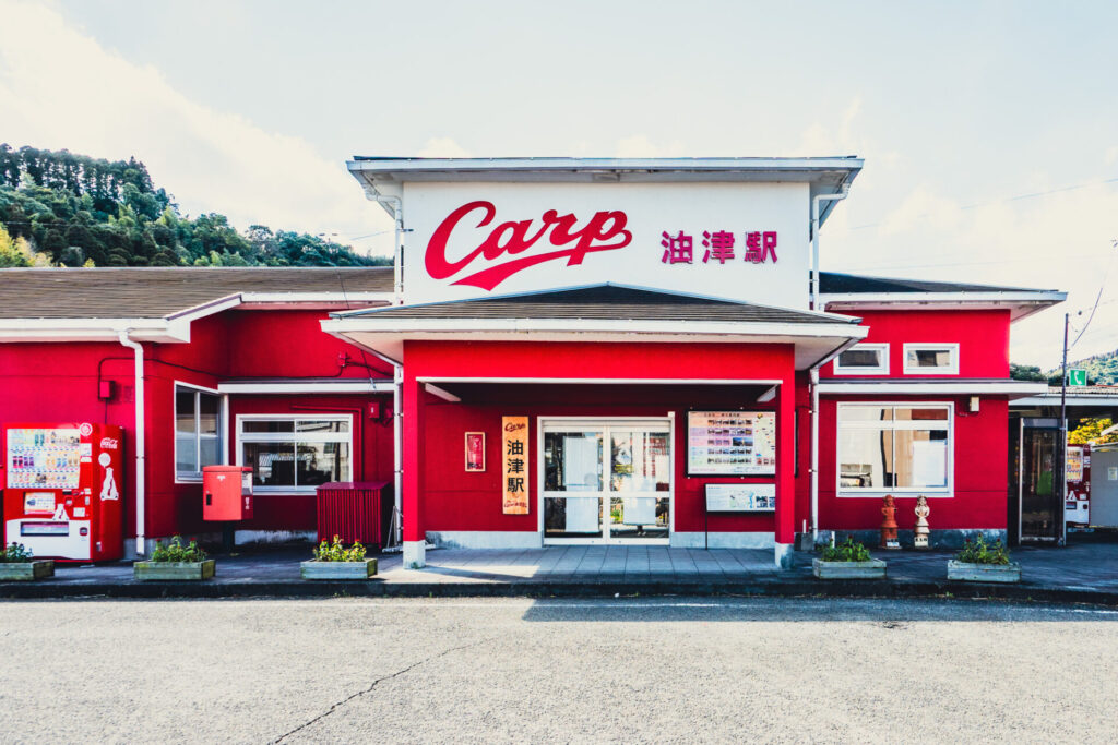 宮崎の駅が野球チーム仕様になっていったのは、この油津駅が始まり。2018年に駅舎を真っ赤に塗り替えるプロジェクトが行われた。