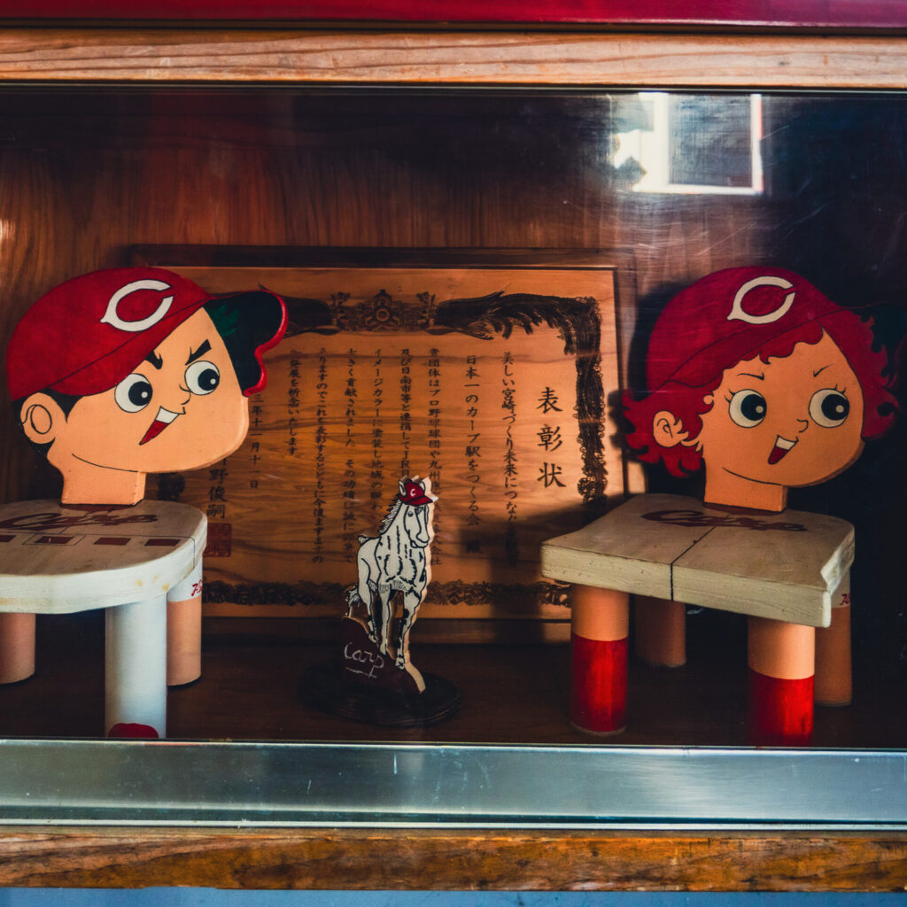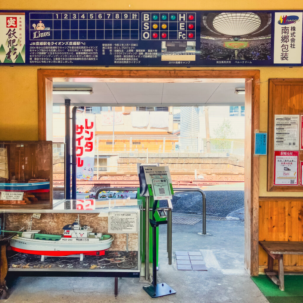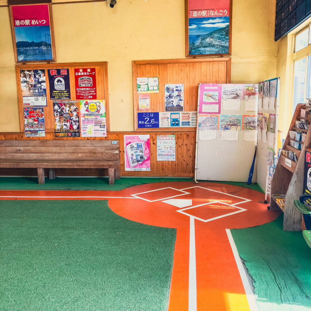 駅舎の中にも愛が詰まっている。スコアボードにバッターボックスなど、ファンじゃなくとも楽しい駅舎。