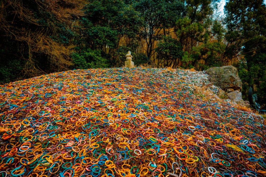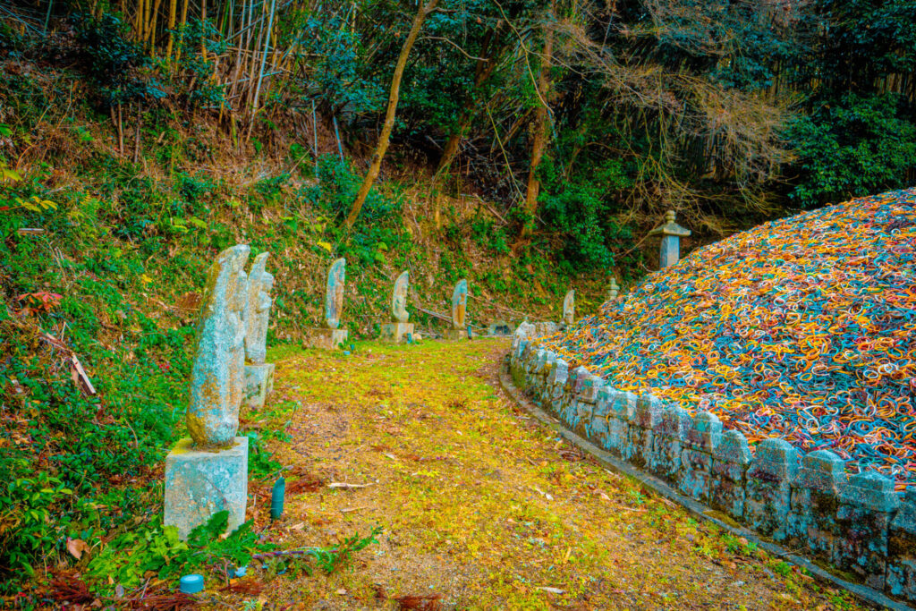突如現れたのは、無数のカラフル。ここが今回の目的地「鼻ぐり塚」である。