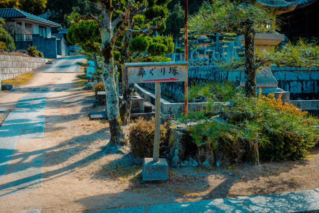 鼻ぐり塚の看板が至る所に設置されているので、そのまま進んでいく。
