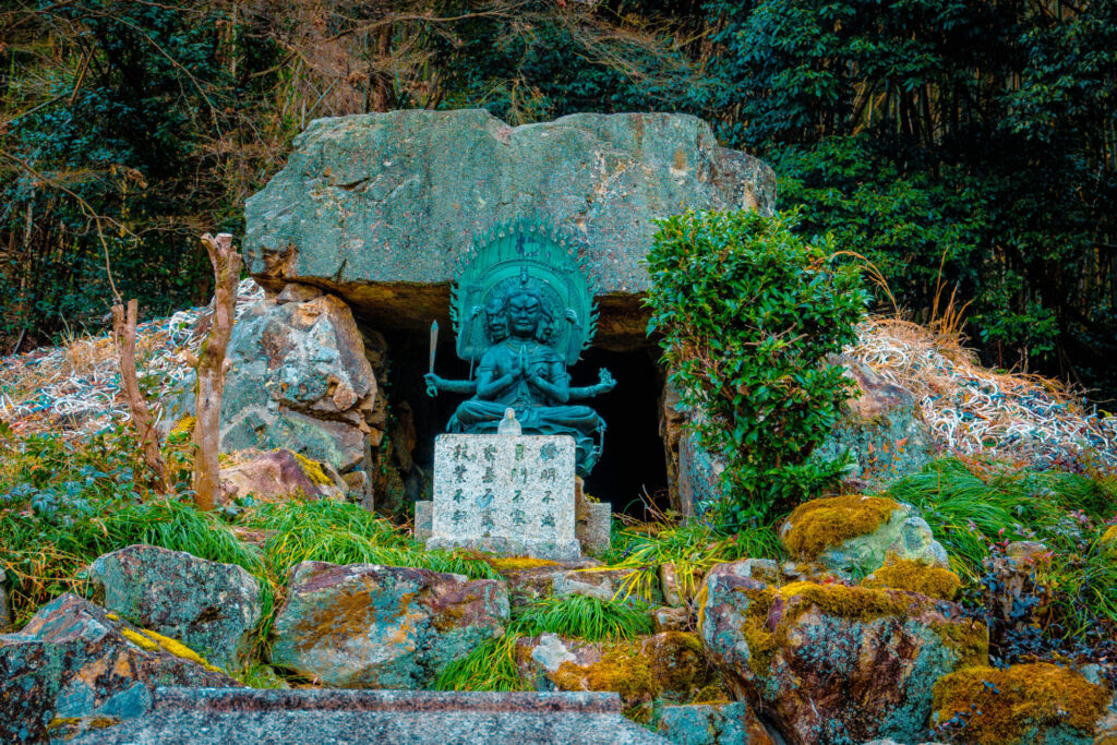 赤錆びた鉄の匂いが漂う山の頂。その中心に鎮座する仏像は、慈悲というよりも、逃れられない生命の循環を象徴する「門番」のような威厳を放っている。その仏像は馬頭観音と呼ばれるものである。