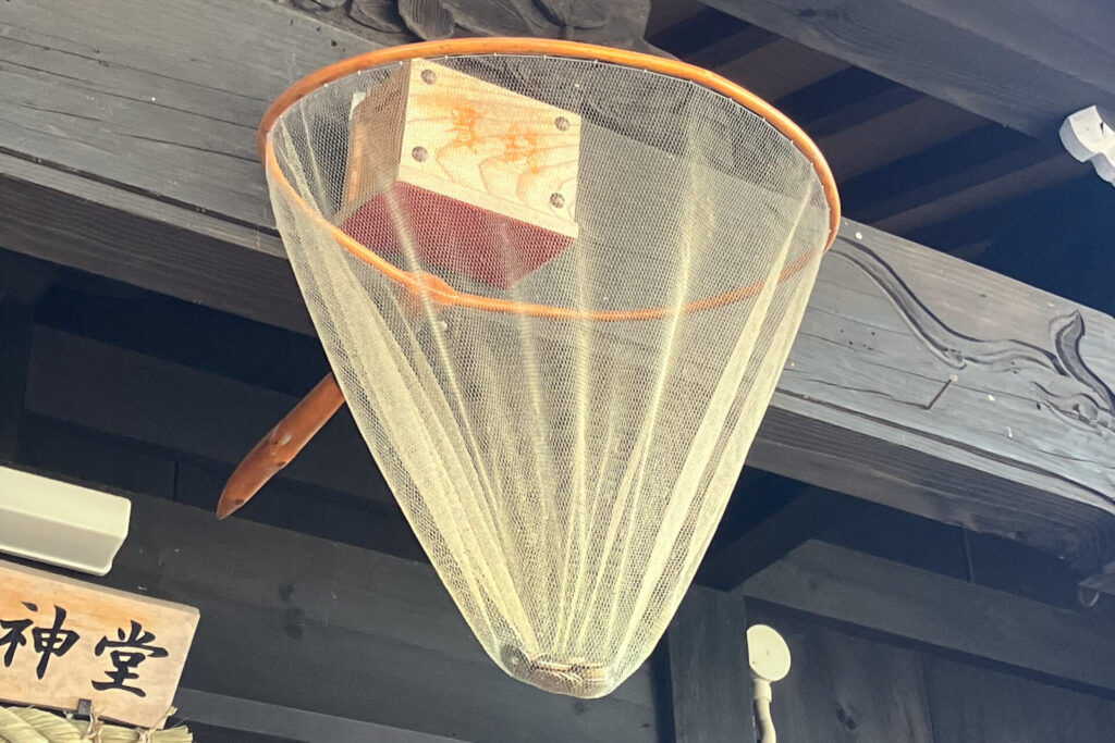 バスケットゴール?いや、よく見たらタモだ。メダカですものね。入ったらラッキー。