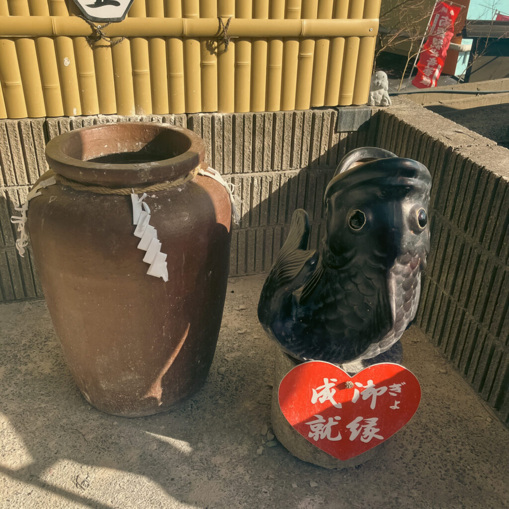 この記事を書いていて気づいてしまった。私、境内で本物のメダカを見つけることをすっかり忘れていた。メダカの看板やオブジェに、完全に気を取られてしまっていた…