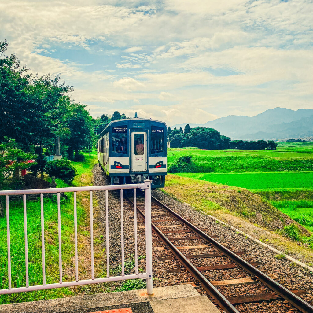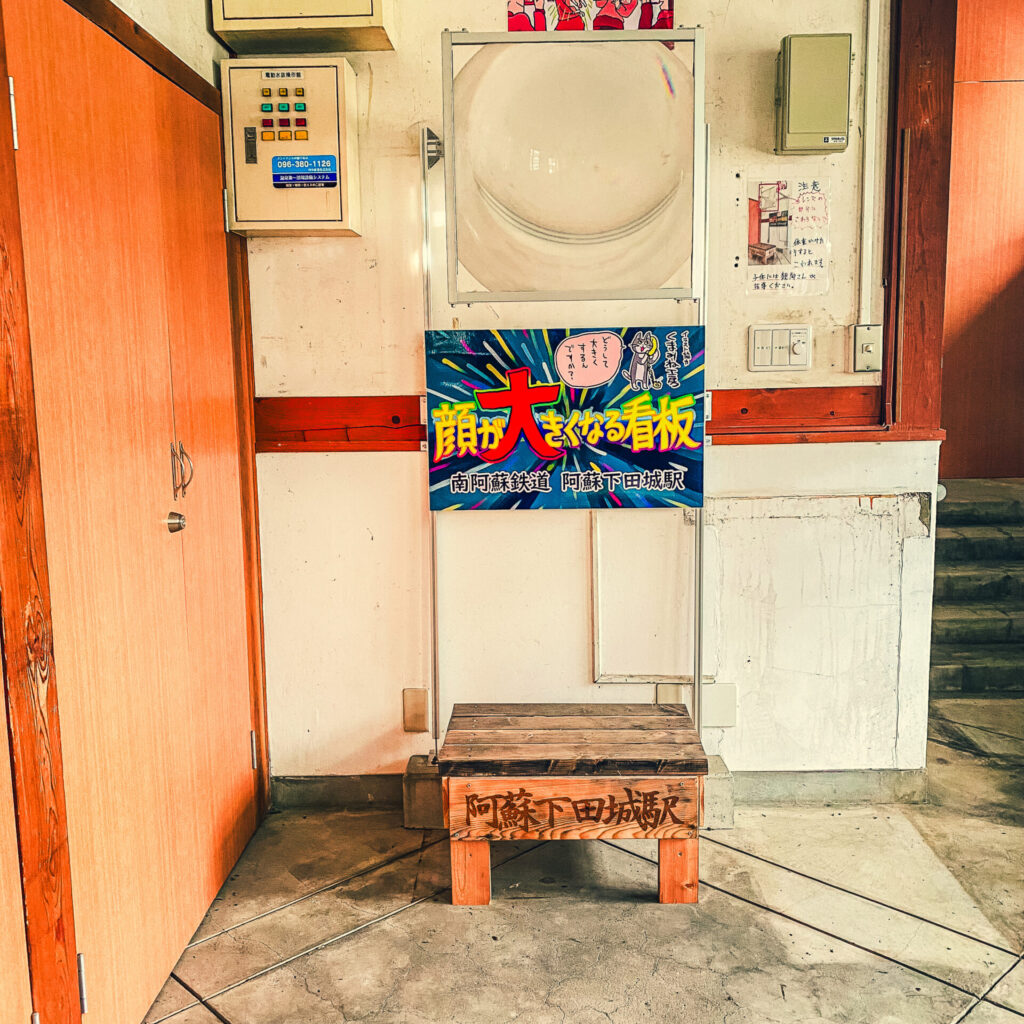阿蘇山を望むことができる自然豊かな場所にある南阿蘇鉄道の阿蘇下田城駅。