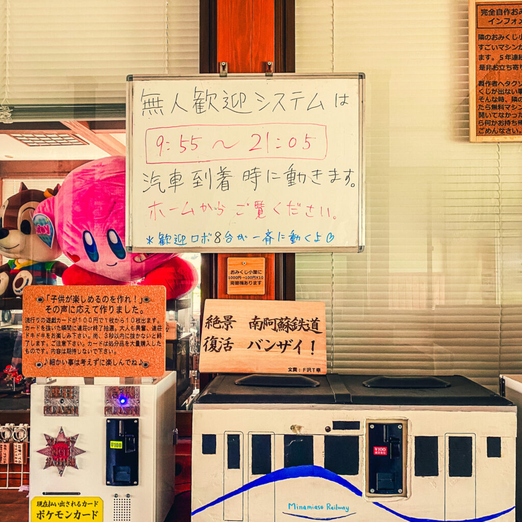 所在地:〒869-1404 熊本県阿蘇郡南阿蘇村河陽392−7 阿蘇下田城駅駐車場