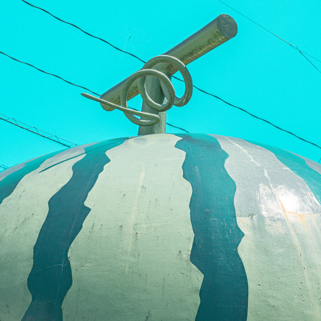 スタート地点の殿崎バス停にあったのはスイカ。でっかい。