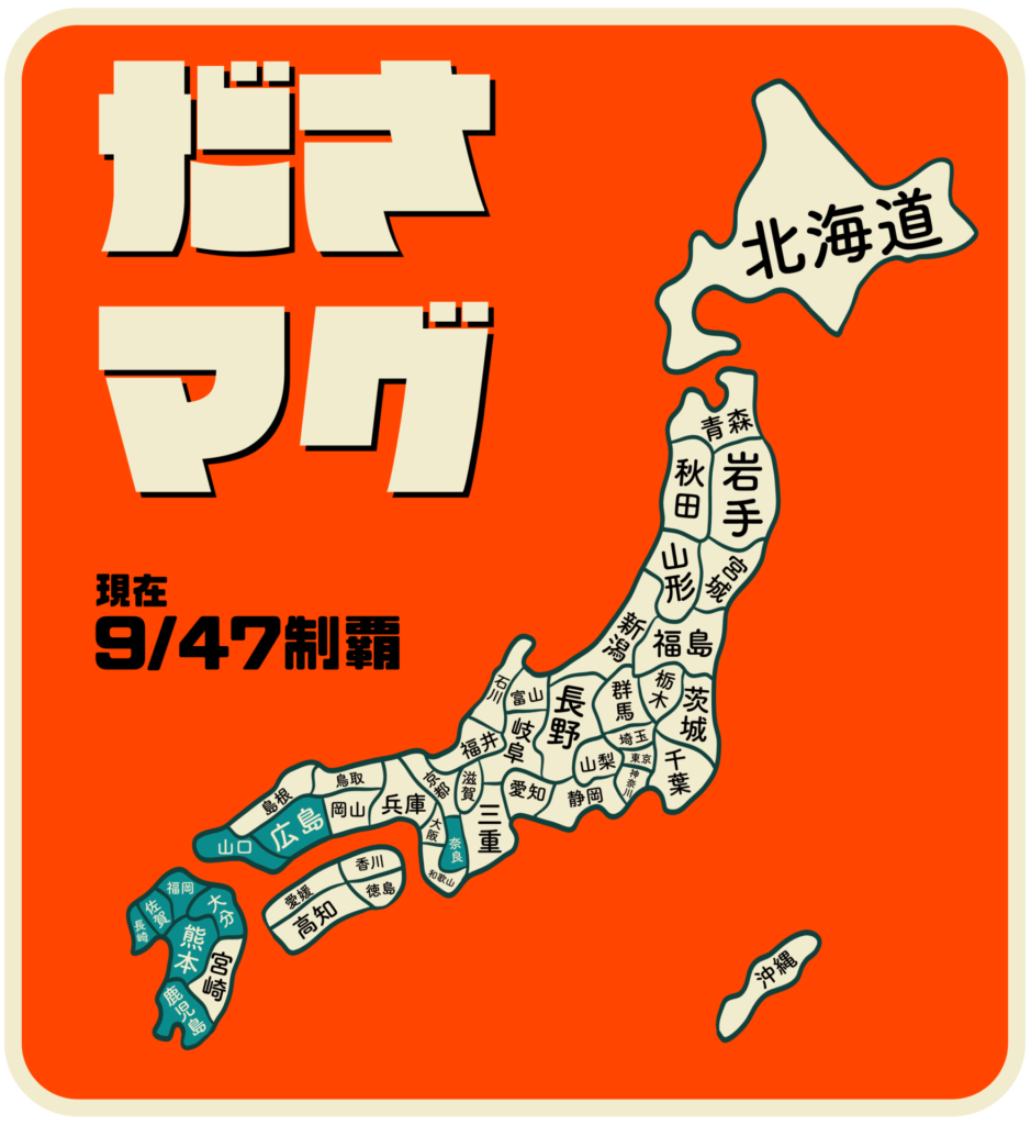 ださいマグネットの略(ハイカラダイブが勝手に命名しているだけです)。お土産屋さんで見かける、誰が買うのか需要がわからないマグネット。そもそもマグネットってそんなに要るか?とツッコミたいところだが、それは置いといて。昭和の頃から変わっていないようなデザインと、各地の名物を盛り込んだ、見て楽しい、触って楽しい、そんなマグネット。