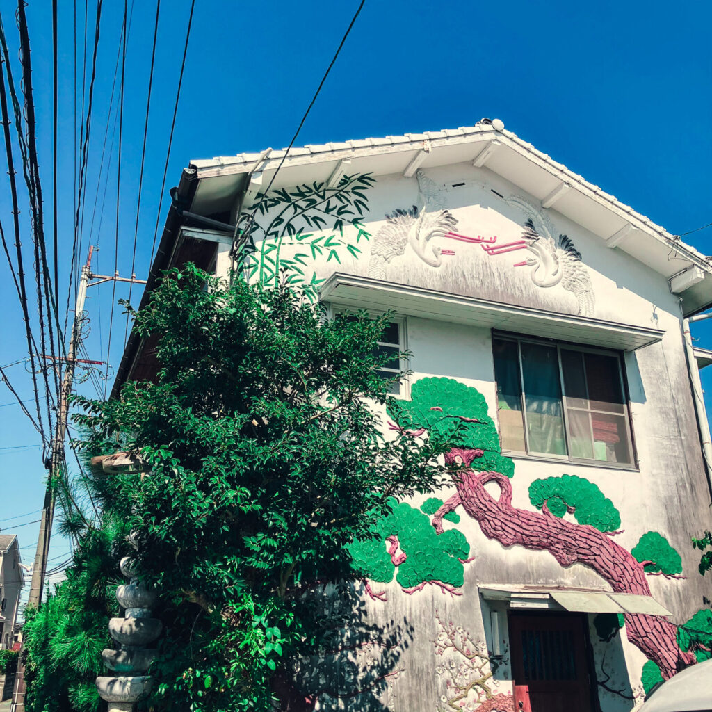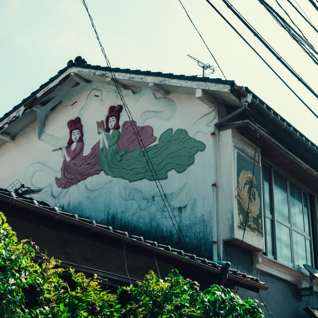 色がなんとも鮮やか。鏝絵は経年劣化で色が落ちにくい。なぜかというと、表面に後から色を乗せるのではなく、漆喰自体に色を混ぜて塗り固めるからだ。