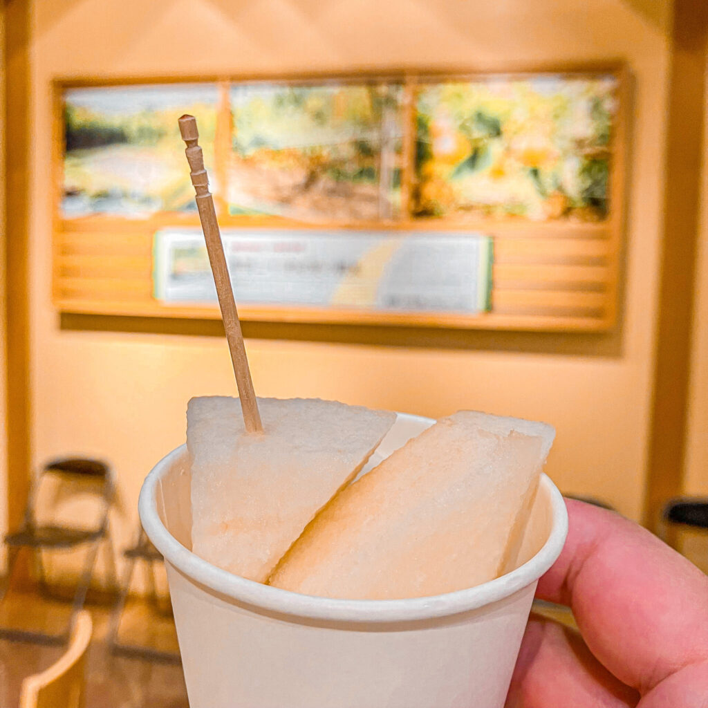 1年中食べることができる梨の試食コーナー。