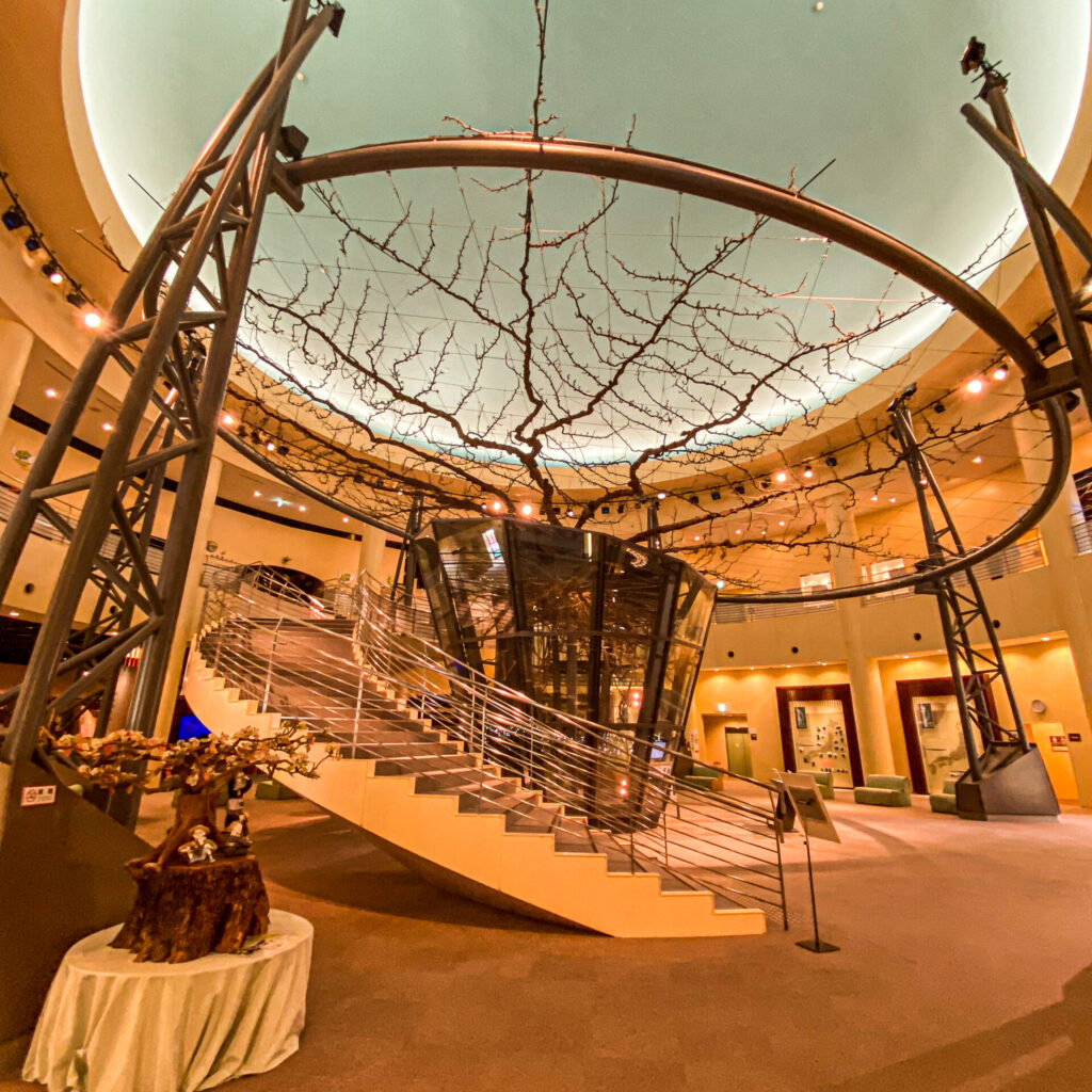 巨木を囲むように、周りには様々な展示スペースがある。