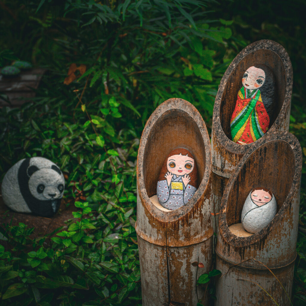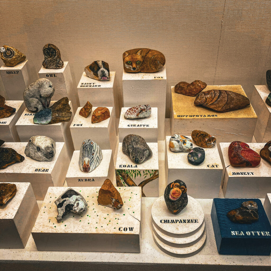 自然の中にある石。割らず削らず、そのままの形を生かし、生き物に変身させる。そんな素敵な魔法を使う園長さん。