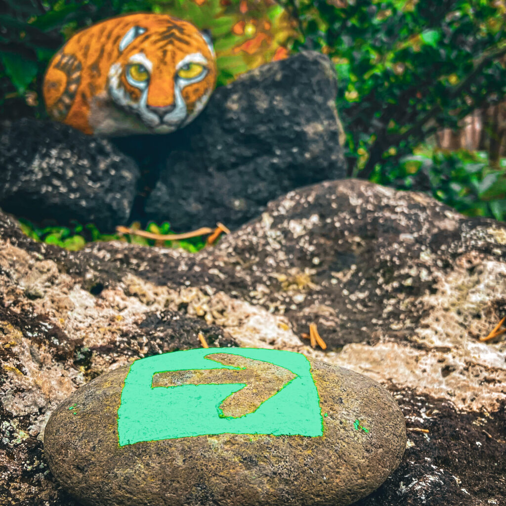 動物探しのチェックリストがあるので、じっくりゆっくり探索。順路の案内石も素敵。