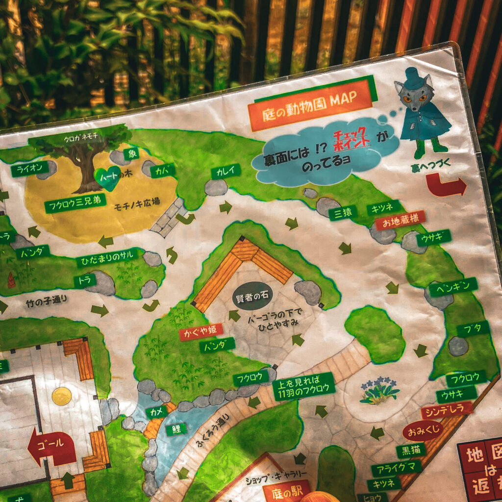動物探しのチェックリストがあるので、じっくりゆっくり探索。順路の案内石も素敵。