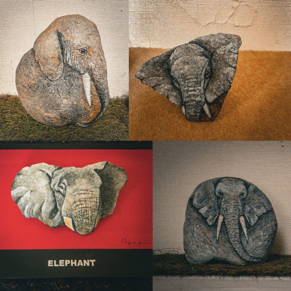 ゾウひとつ取っても、こんなに色々な表情がある。一つとして同じものがないのが石を使う面白さ。