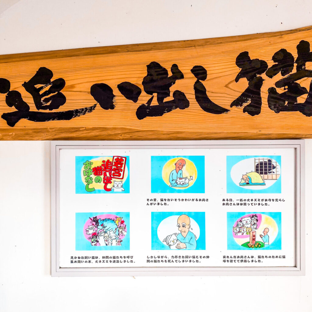 大ネズミを退治するために多くの猫が犠牲になってしまった。可哀想に思った和尚は、猫塚を作り手厚く葬ったという。その塚がここの猫塚だと言われる。