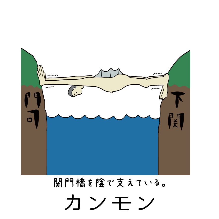 勝手にご当地キャラ 勝手に福岡県のご当地キャラ カンモン 2025.12.17 カンモンのプロフィール 名前:カンモン 生息地:福岡県北九州市門司区 身長:1068m 体重:3.2万トン 関門海峡を支え続けて50余年。本州と四国をつなげるモンスター。常にプルプルしているが、朝と夕方の車が多い時間帯は特にプルプルしている。退屈すると渦潮を見て目を回すか、ふぐとおしゃべりしている。 勝手にご当地キャラとは ご当地ものが大好きなハイカラダイブが勝手に考えた非公式なご当地キャラクターである。 ハイカラダイブのページではB級スポット・珍スポットなど今までとは違うスポットを紹介中!こちらから。 Post Share Line note 勝手に福岡県のご当地キャラ ヤメチャマン 前の記事 勝手に福岡県のご当地キャラ オニギリ・ハ・ヤハリ・メンタイコ 次の記事