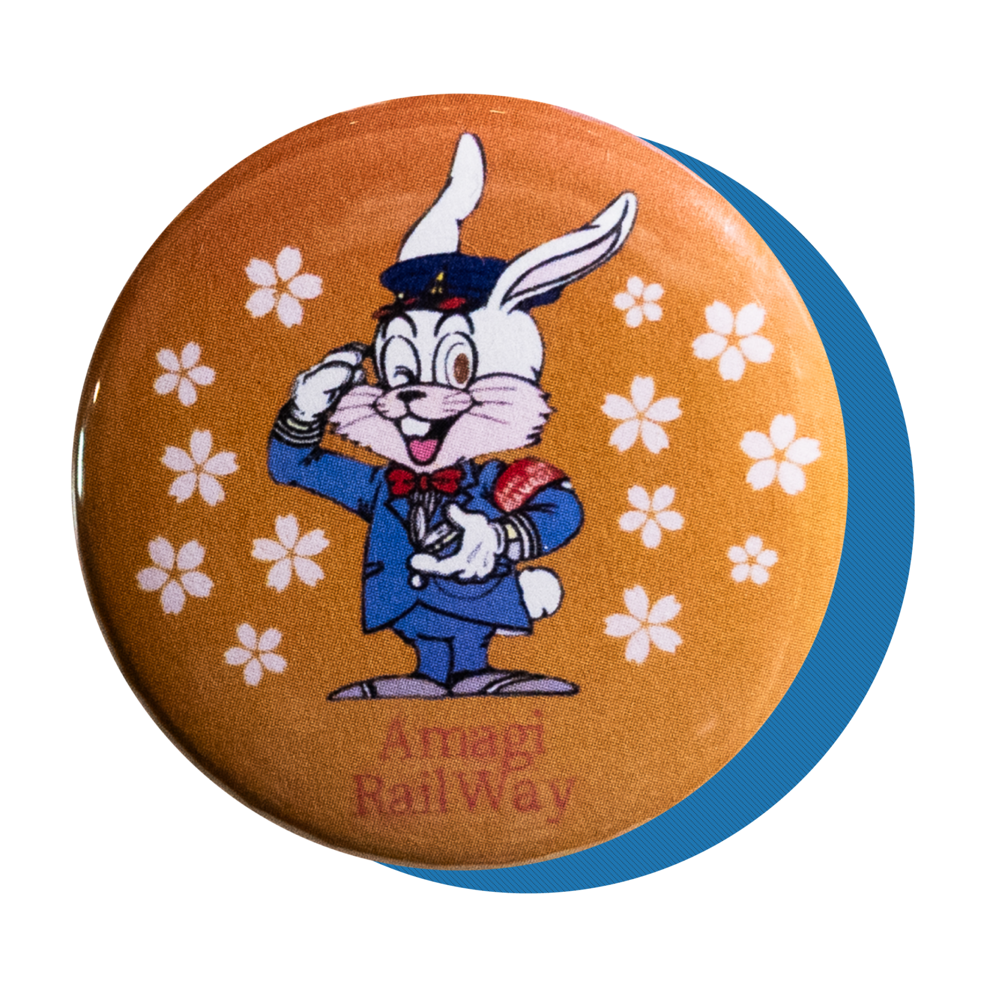甘木駅に併設されている観光協会でゲットしたのは、甘木鉄道のオリジナルマスコットキャラクター、レビットくん缶バッジ。レビットくんデザインの他に鉄道デザインの物もあり。駅の窓口の方でも販売されていました。