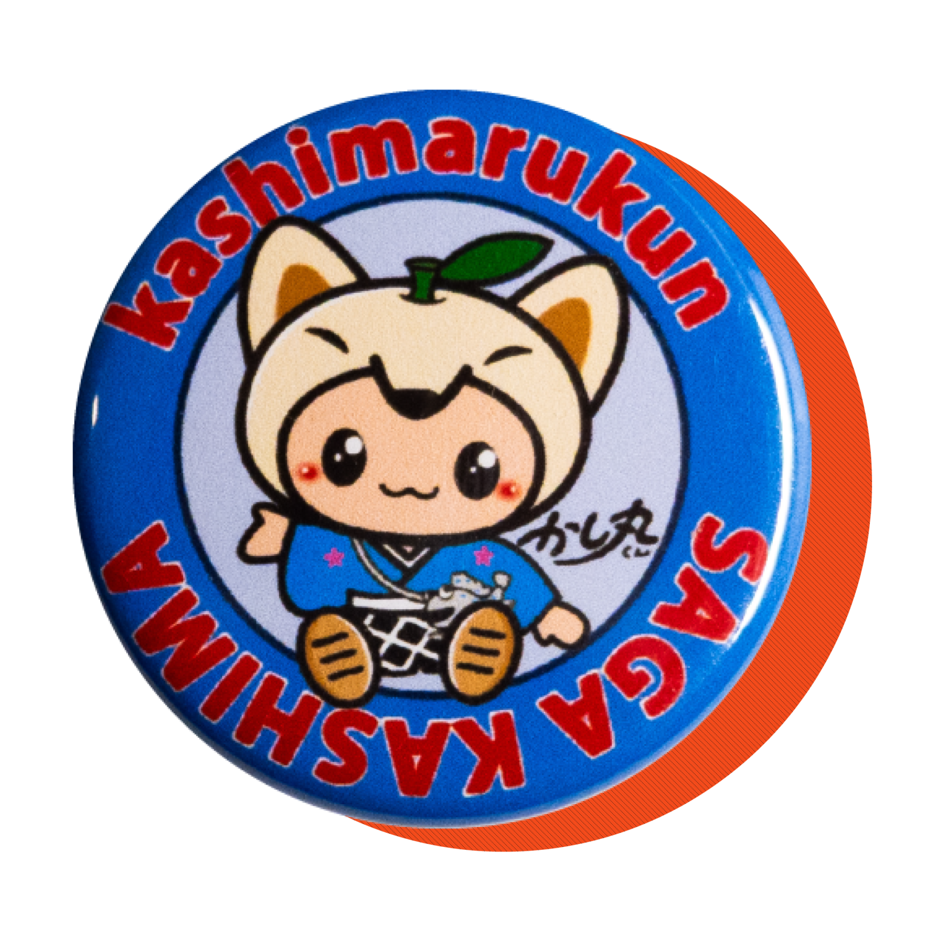 佐賀県鹿島市にある肥前鹿島駅。こちらにあるお土産屋さんで見つけたのは、ご当地ゆるキャラである、かし丸くんの缶バッジ。かし丸くんは日本三代稲荷とも言われる祐徳稲荷神社をイメージした狐と、名産のみかんが合体した帽子をかぶり、そして白壁土蔵をイメージした着物を身につけ、そして腰あたりにあるものをよく見てほしい。ムツゴロウのポシェットを下げてるー。かわいいー。ムツゴロウポシェット、商品化してくれないかな。作るかな。