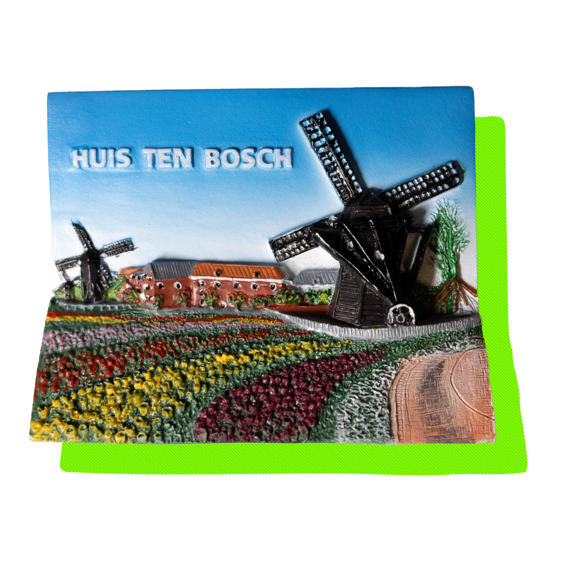 お盆だったせいか、手前から道路激混み。駐車場迷う。駐車場1000円!?ちょっとウロウロして帰るのは勿体無いので結局、今日はやめる〜となり、入国せず外のお土産屋さんだけ寄った。その時に買ったこのマグネット。