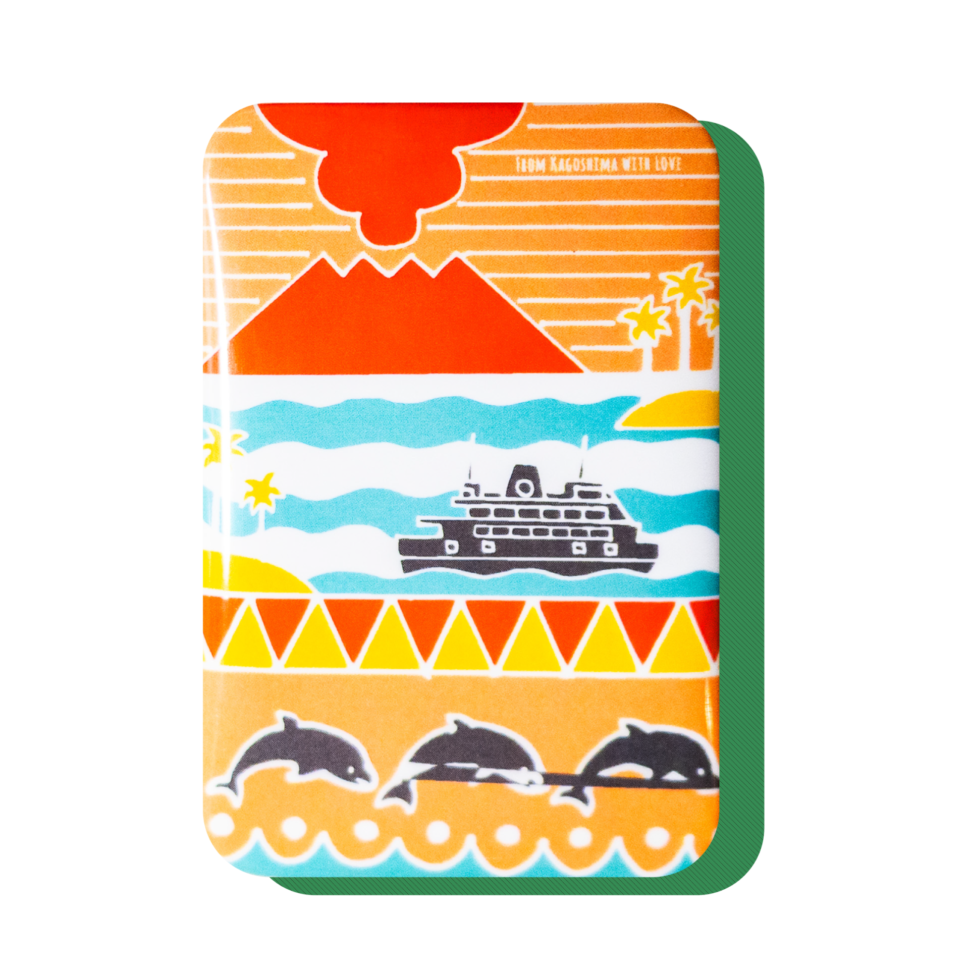 道の駅たるみずで見つけた角形缶バッジ。桜島、フェリー、イルカのデザイン。垂水市は今回初めて訪れたのだが、途中こんなの見つけたー。