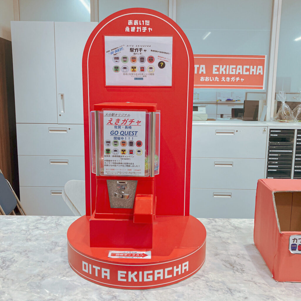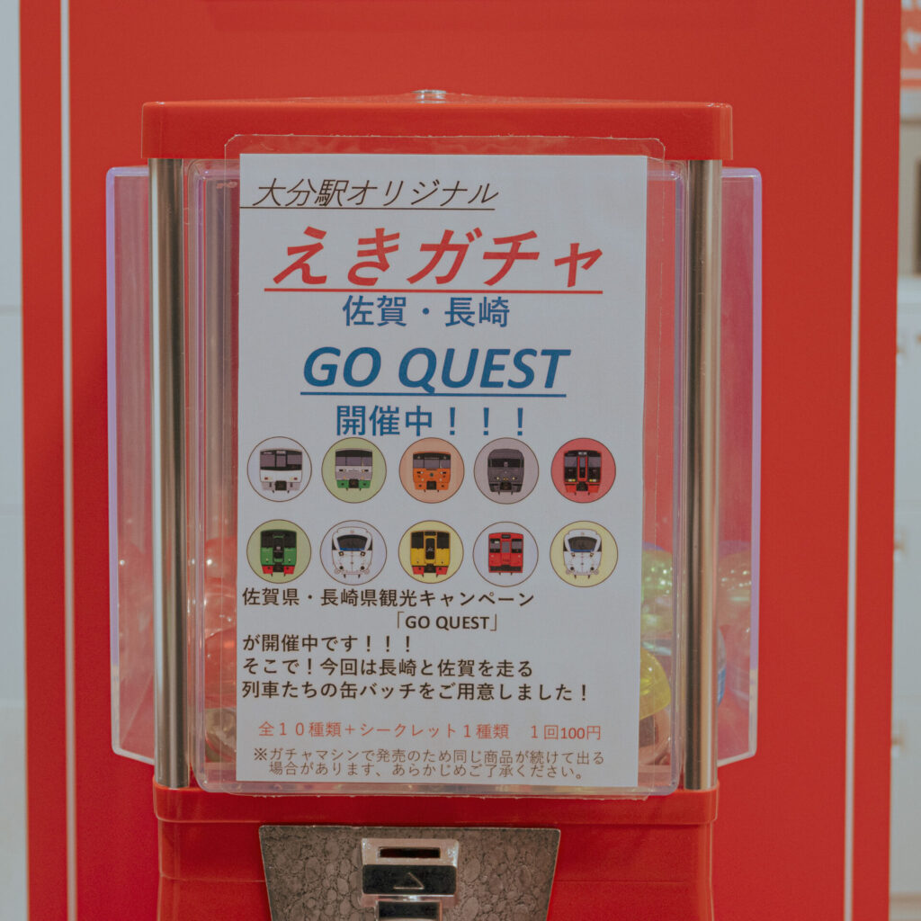 大分駅のみどりの窓口で発見した缶バッジガチャ。