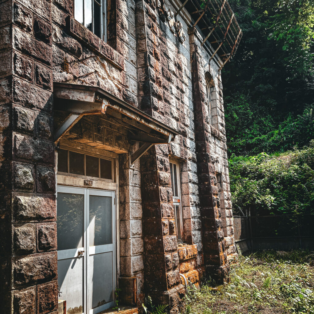 1919年に完成した水力発電所で、建物は鳥取県内唯一の石造り建築。