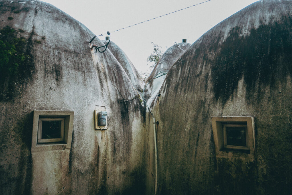 一瞬タトゥイーンに来てしまったのかと思った。山の中にこんなSFっぽいのが突然現れたらテンションあがる。中には誰もいないし、誰も住んではいない。
