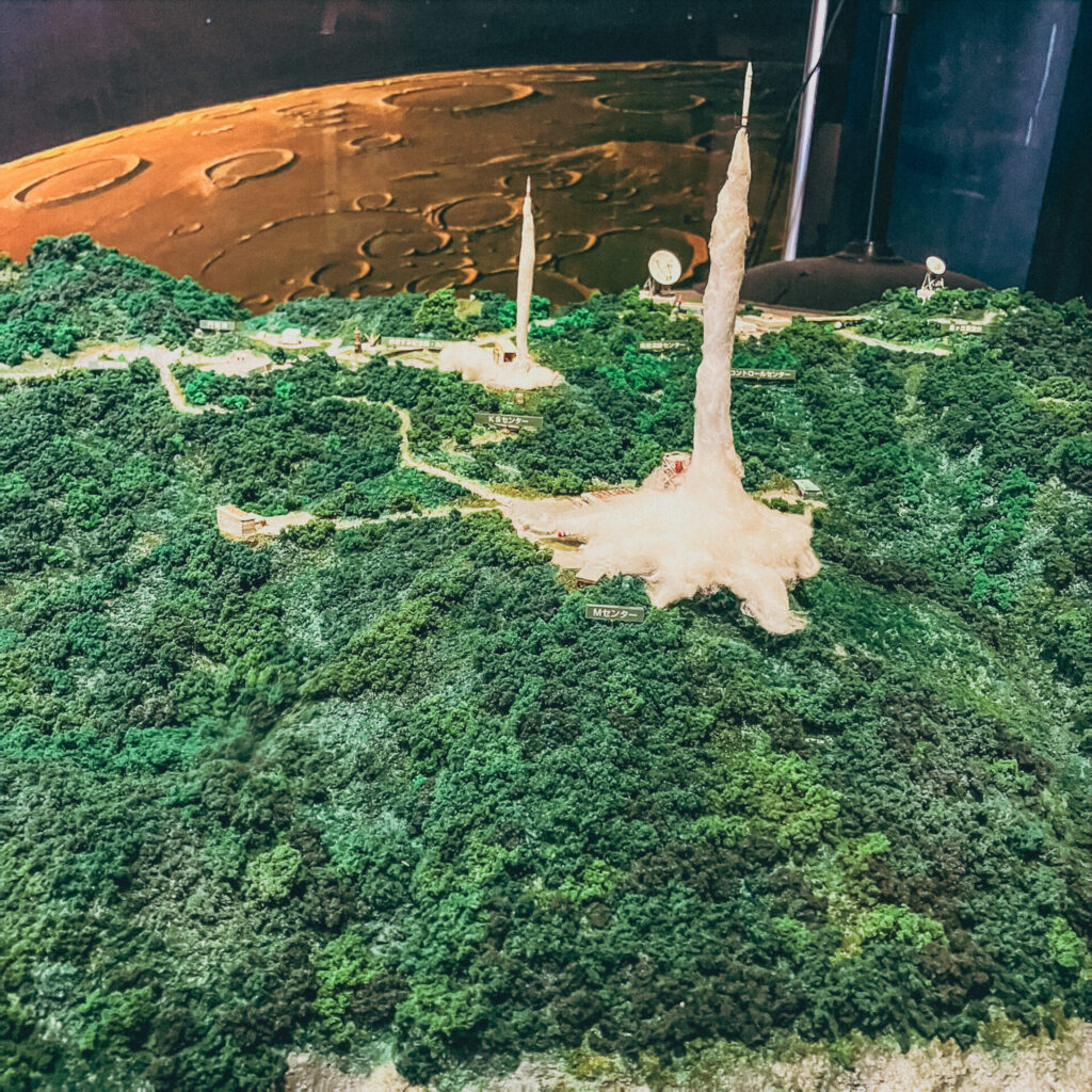 引きで見ると、奥にロケットの発射台が見える。