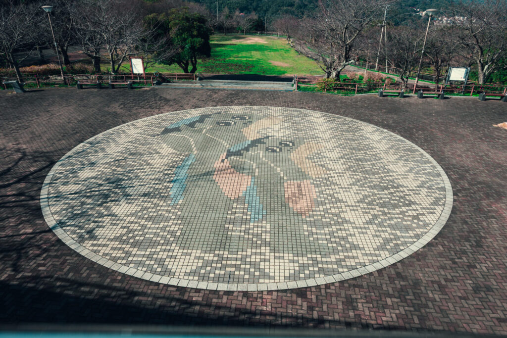 このタイル。何か模様っぽいぞ。そう思って、展望台の2階から見てみる。