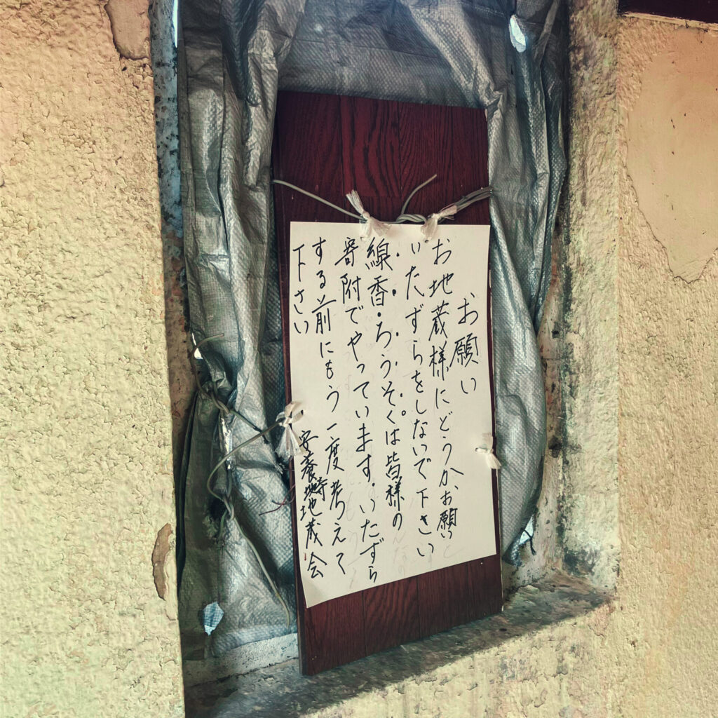 そんな、素晴らしく好立地に建っている謎の「河童封じの地蔵尊」重々しい雰囲気の特徴的なお堂の中にお地蔵さんが祀られている。このお地蔵さん名前は「虚空蔵菩薩」と言い、実は背中に他のお地蔵さんにはない特徴を持っている。