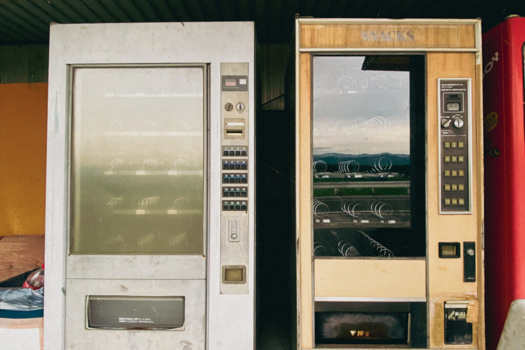 左側の2台はスナック系の自販機。空っぽで使われていない。