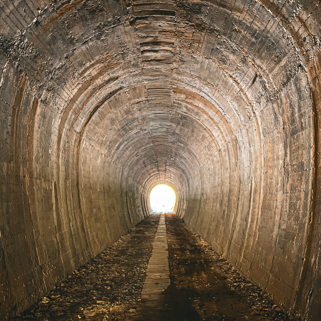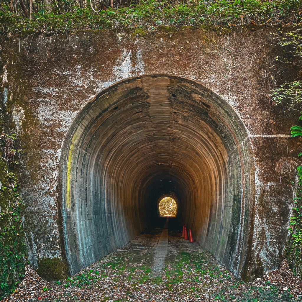 長い期間をかけて作られた鉄道のためのトンネルや橋脚。特に完成間近だった旧今福線沿いにはトンネルが12本、橋脚10基、橋梁3本、アーチ橋5本と、ものすごい数の遺構が存在する。