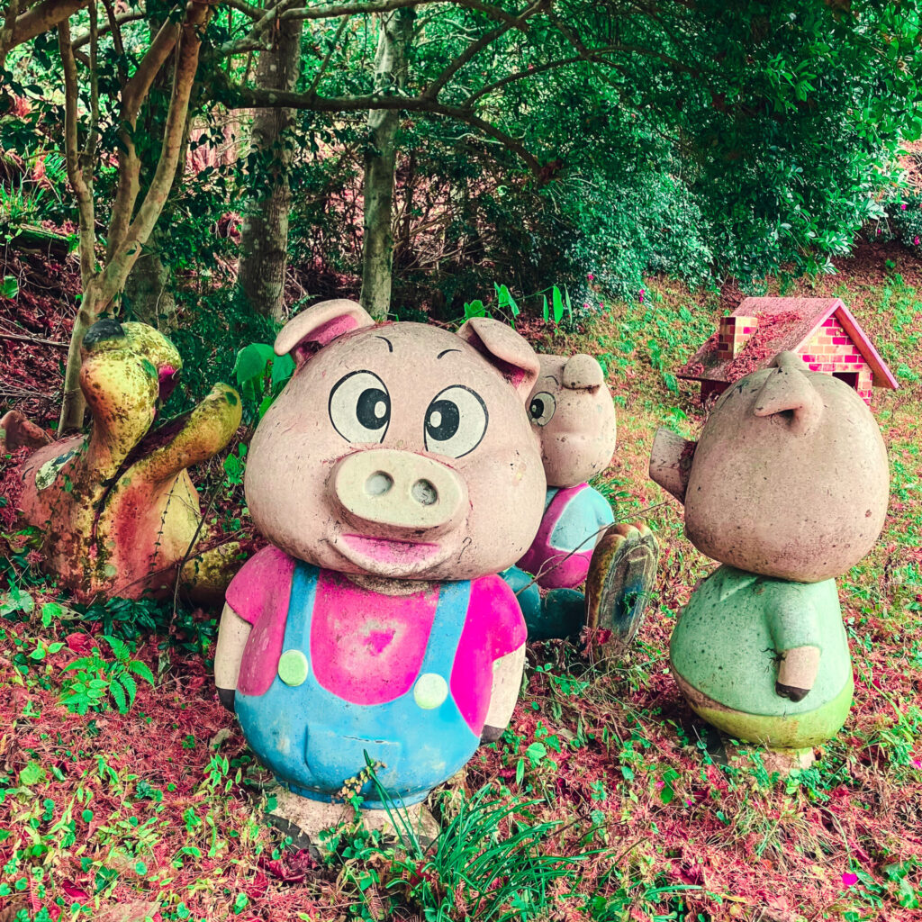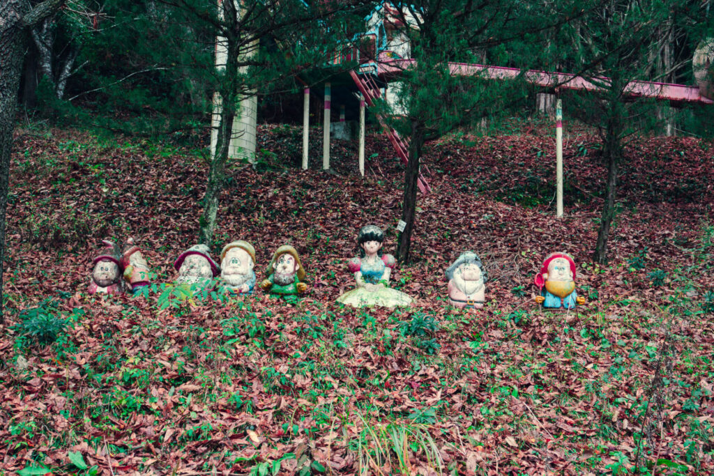 白雪姫と小人たちがお出迎え。これ以上足を踏み入れるなと言わんばかりの威圧感。