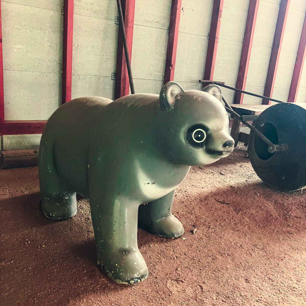 ゲートボール場らしき場所にはなぜか一体のクマ。