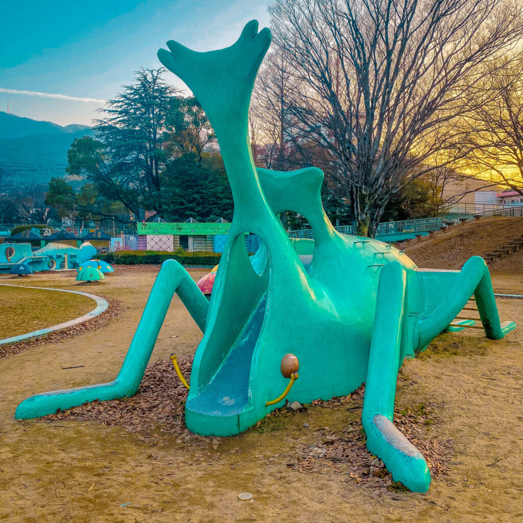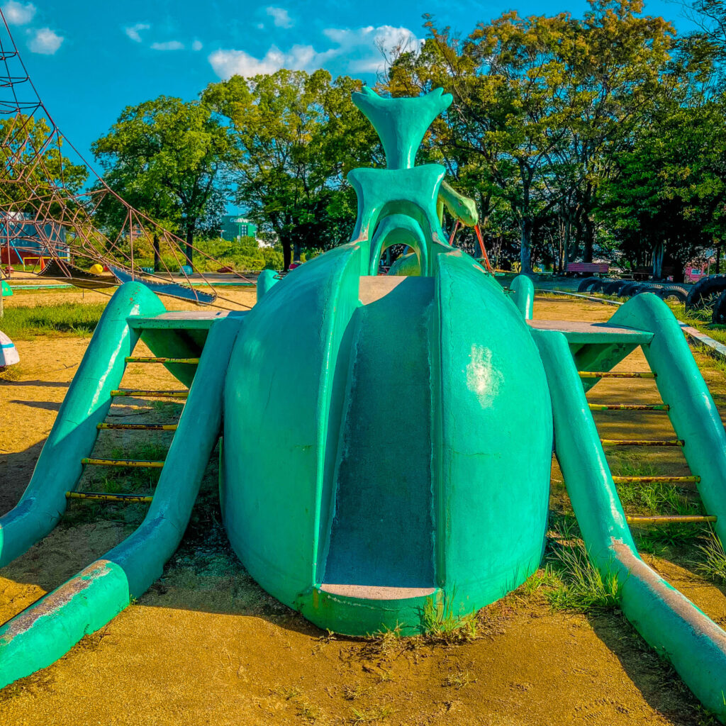 やべり台 【やべり台】桃園公園のカブトムシのすべり台【福岡県】 2025.09.30 やべり台019 カブトムシのすべり台【福岡県】 福岡県北九州市八幡東区にある「桃園公園」で見つけた、やばいすべり台はこのカブトムシのすべり台。 なかなかインパクト抜群。むしろ、カブトムシで合っているのかな?足はカマドウマぽいので、違う昆虫かなとも思ったが、立派なツノをお持ちなのでやはりカブトムシなのだろう。 後ろ足は何やらハシゴの用途を果たしている。 ハシゴを登った先は、両方とも滑降部となっている。滑りたい放題のすべり台である。 そんな、やべり台。 桃園公園 GoogleMap Post Share Line note 【やべり台】神の木公園のゾウのすべり台【大分県】 前の記事 【やべり台】ブーツのすべり台【山口県】 次の記事