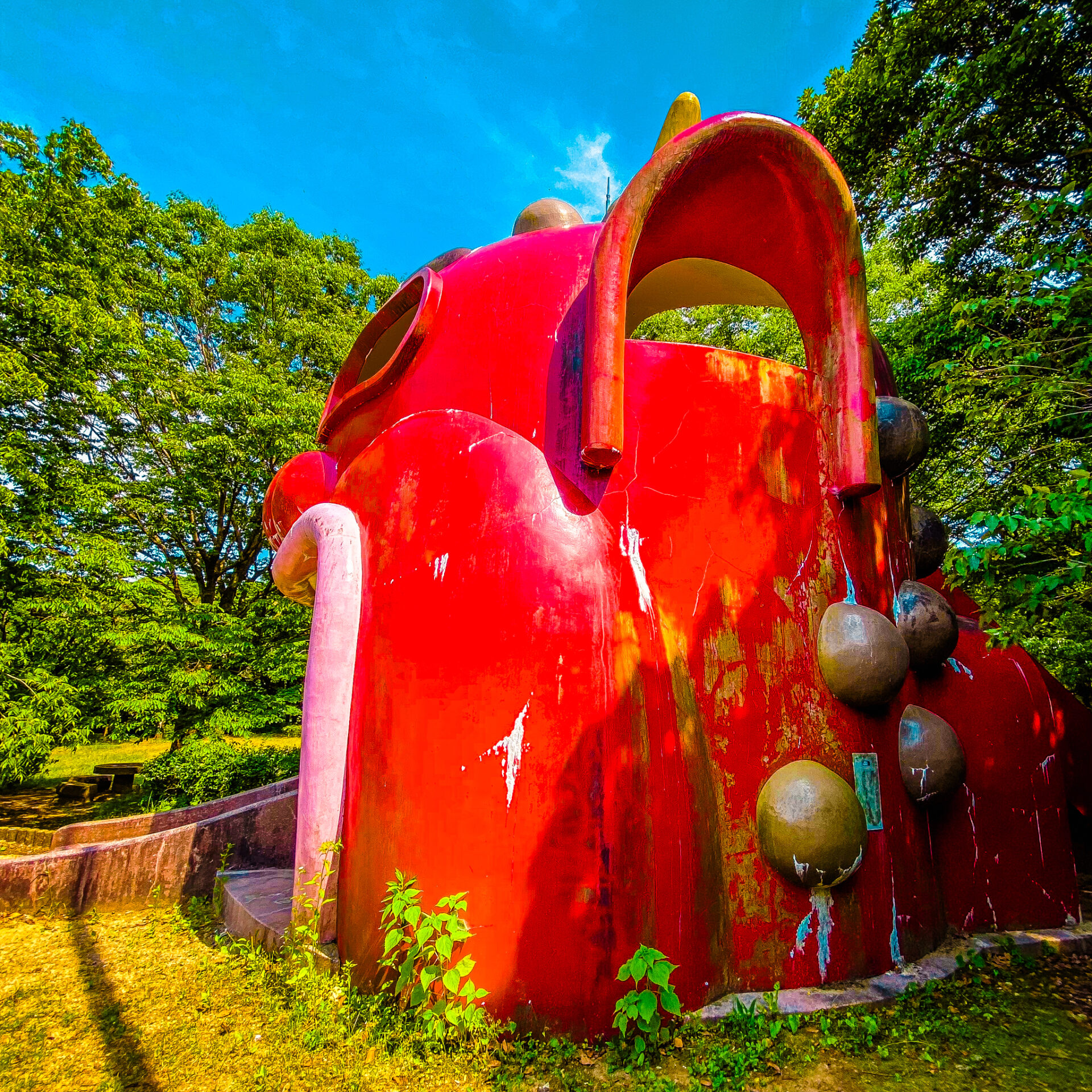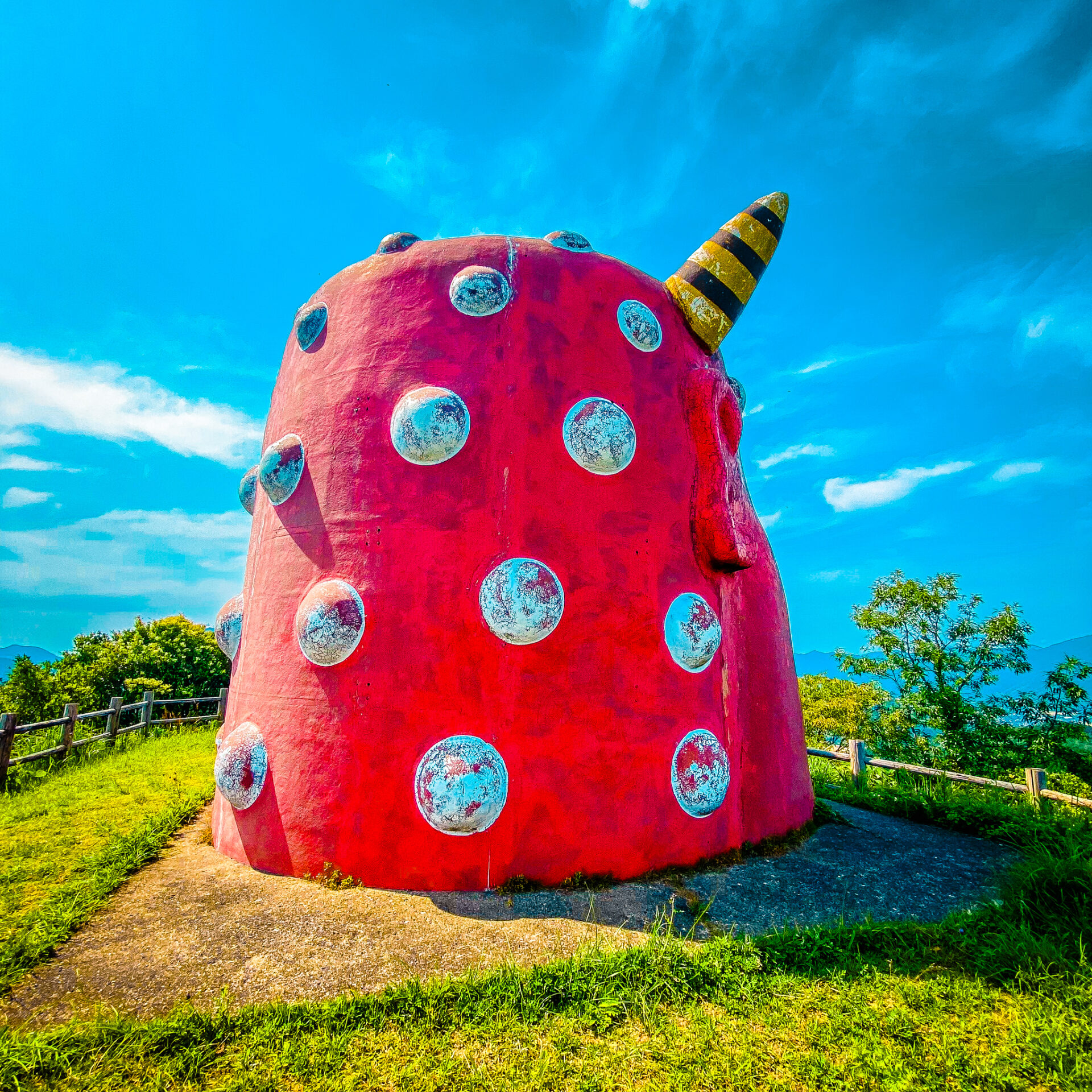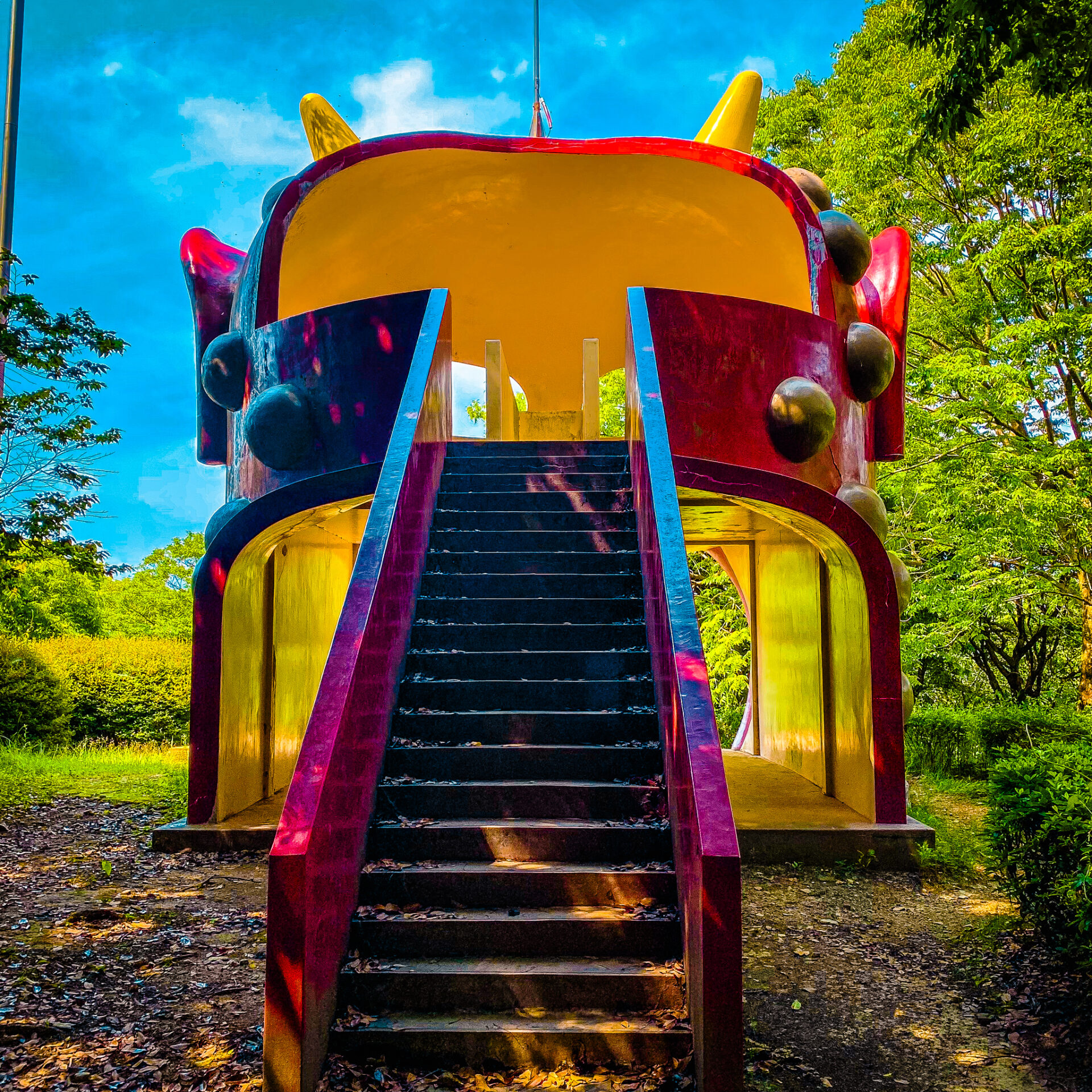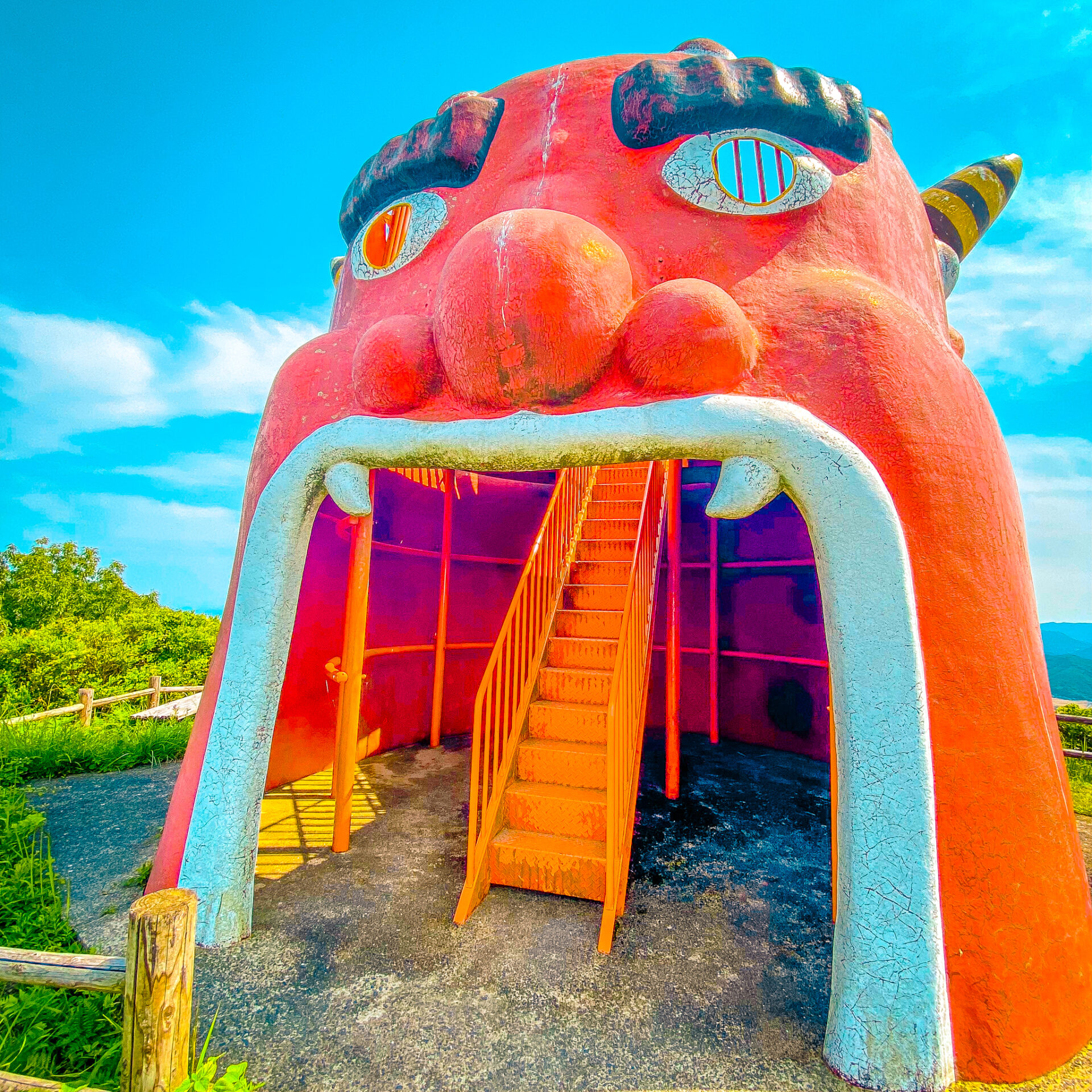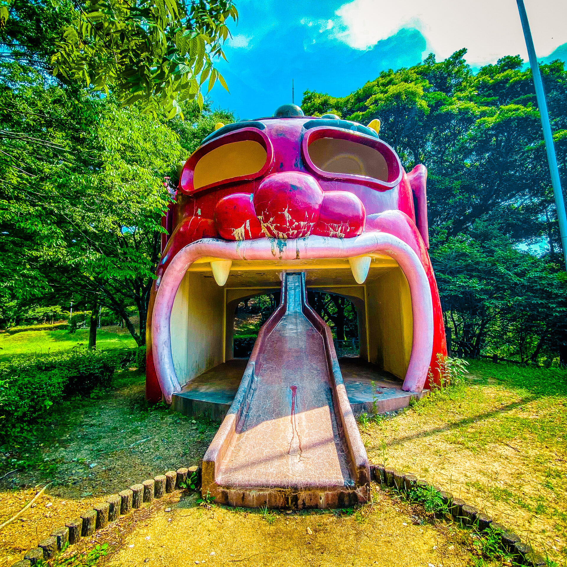 佐賀県多久市にある「鬼ノ鼻山憩いの森」で発見した、赤鬼のすべり台。