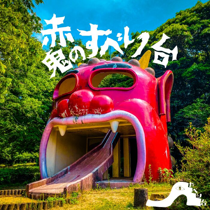 佐賀県多久市にある「鬼ノ鼻山憩いの森」で発見した、赤鬼のすべり台。
